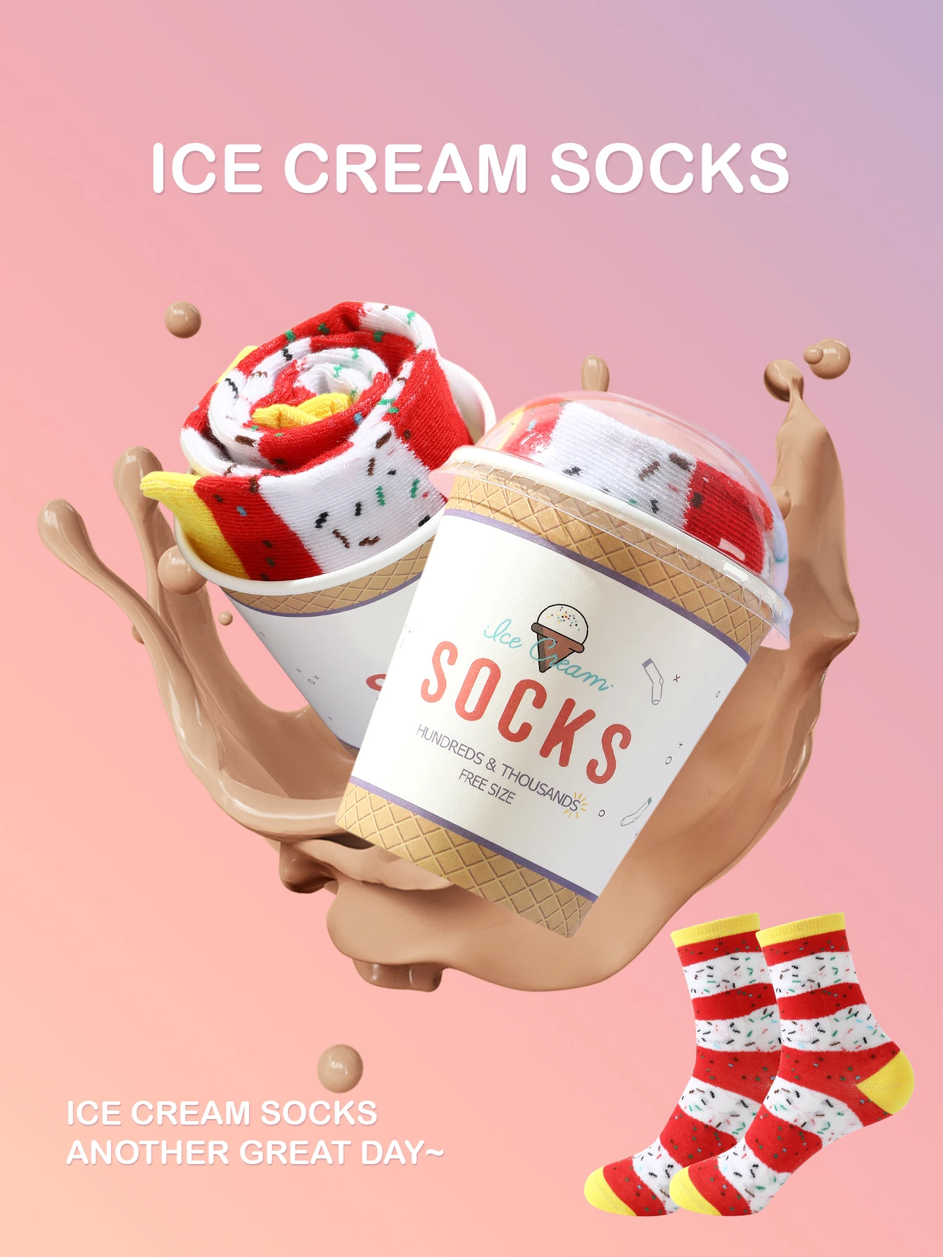 Strawberry and Milk Ice Cream Socks – Add a scoop of fun to your wardrobe! Featuring a charming design inspired by creamy strawberry and milk ice cream, these cozy socks bring a playful and sweet touch to any look. Perfect for gifting or treating yourself, they combine comfort and style in the most delightful way. Step into sweetness with every step!