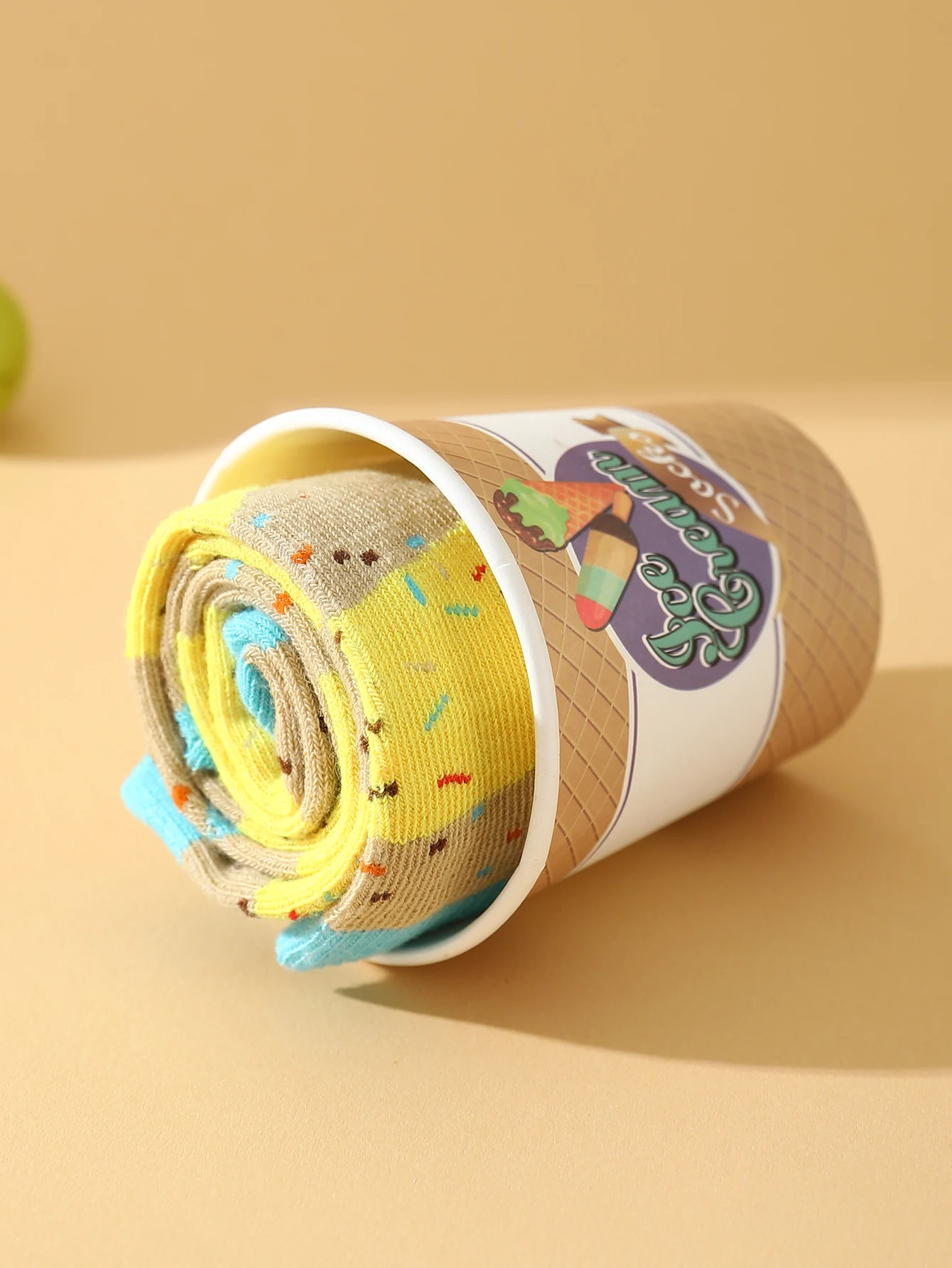 Ice Cream Banana Socks – indulge in a scoop of fun with these quirky and colorful socks! Perfect for ice cream lovers, these cozy socks feature a playful banana and ice cream design that adds a delightful touch to any outfit. Ideal for gifting or treating yourself, they offer both comfort and style. Step into sweetness with Ice Cream Banana Socks!